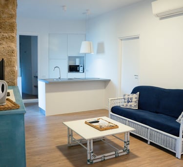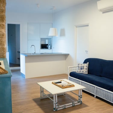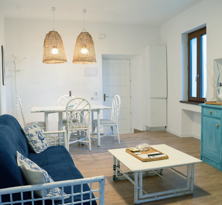 Appartamento luminoso con due camere, due bagni e soggiorno attrezzato, ideale per una vacanza rilassante ad Alghero.
